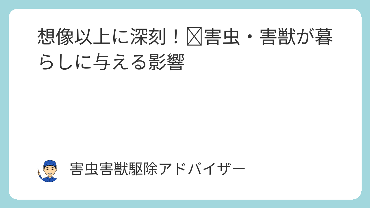 目に見えない場所にひそむ害虫や害獣の存在が、実は私たちの健康や心にじわじわと影響を与えている──そう聞くと「そんなに?」と驚くかもしれません。
