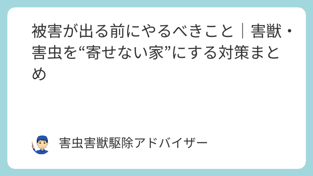 被害が出る前にやるべきこと|害獣・害虫を“寄せない家”にする対策まとめ