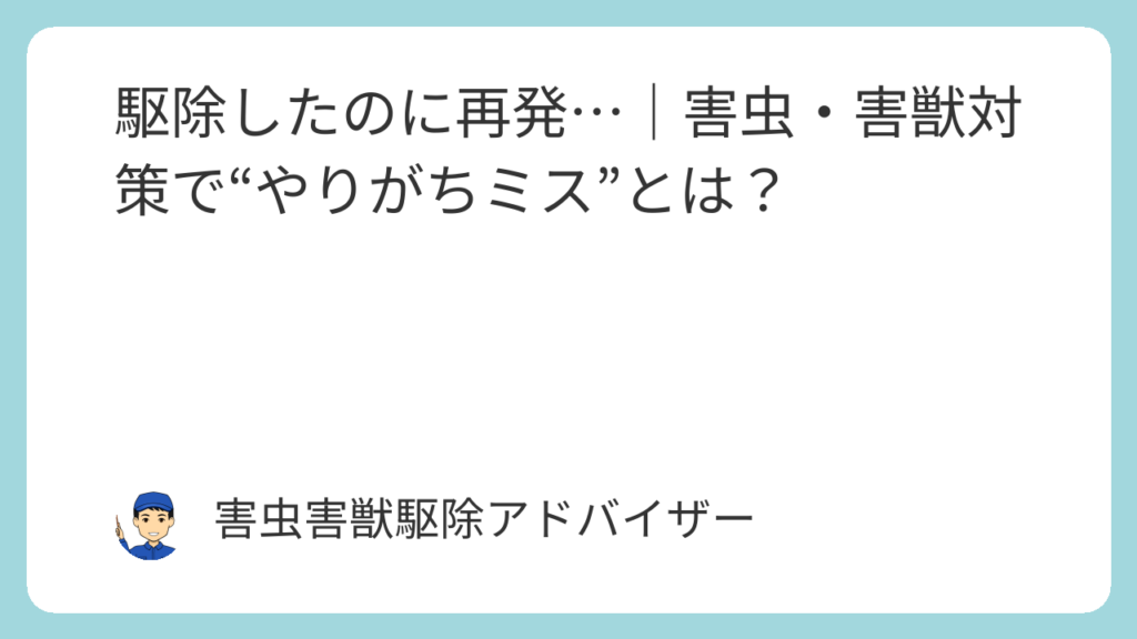駆除したのに再発…|害虫・害獣対策で“やりがちミス”とは?