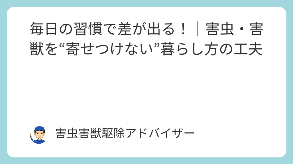 毎日の習慣で差が出る!|害虫・害獣を“寄せつけない”暮らし方の工夫
