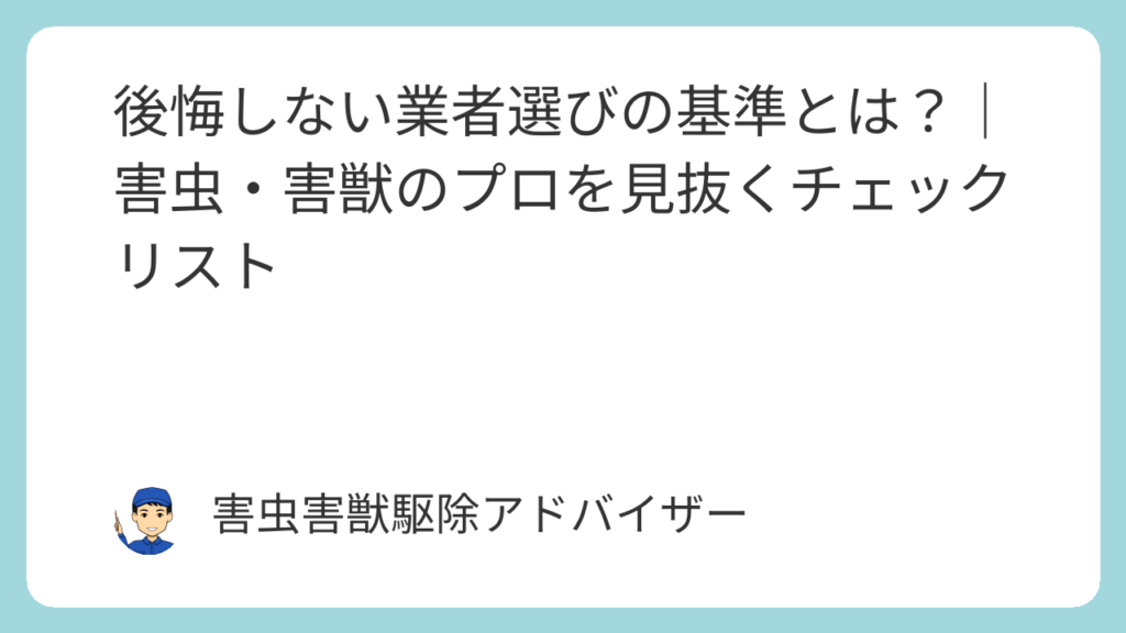 後悔しない業者選びの基準とは?|害虫・害獣のプロを見抜くチェックリスト