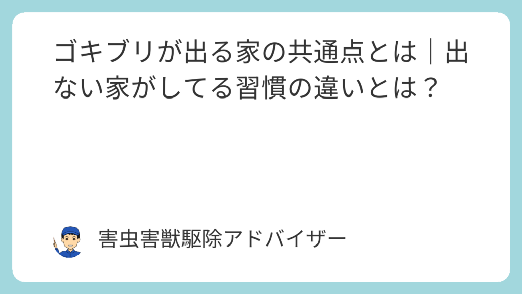「うちはキレイにしてるのに、なんでゴキブリが出るんだろう?」——これは、実際に何度も耳にしてきた悩みです。 ですが、ゴキブリが好むのは“汚い家”とは限りません。 むしろ「見た目は片付いているけど、隠れた場所に湿気や食べ物のカスが残っている」そ... -