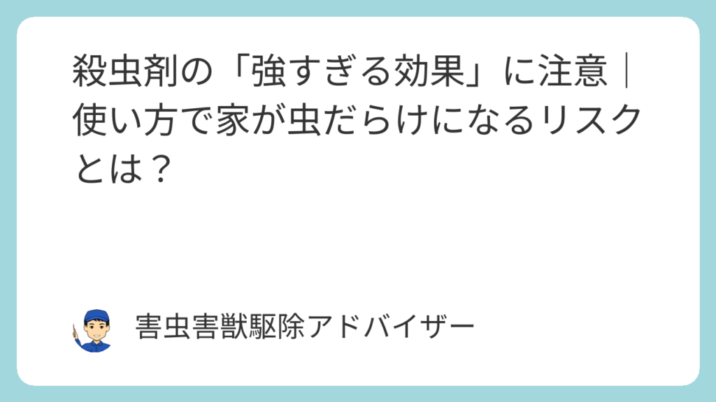 「とにかく強い殺虫剤を使えば、全部片付く」と思っている方は意外と多いです。 でも、実際には“強いだけ”では意味がないどころか、むしろ害虫の行動を複雑にしてしまい、かえって状況が悪化する場合もあります。 市販の殺虫剤は年々性能が上がっています... -